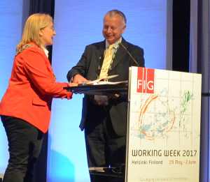 Dr. Clarissa Augustinus, UN-Habitat, has worked closely with FIG for many years through her position in UN-Habitat and since the establishment of the Global Land Tool Network (GLTN). FIG Council wanted to acknowledge the longstanding cooperation with Clarissa Augustinus that has lasted throughout many councils and FIG presidents. Clarissa Augustinus is founder and Lead on the Global Land Tool Network. Clarissa Augustinus is in June 2015 standing down from UN-HABITAT.